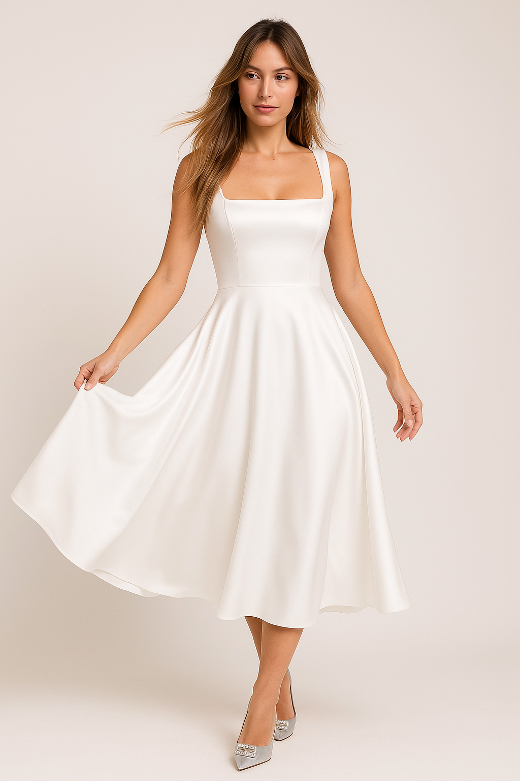 Ρίμ | Μίντι Φόρεμα Εlegant με Τετράγωνη Λαιμόκοψη