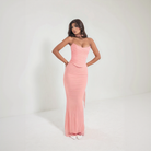 This two-piece model combines a strapless top with a corset cut and a fitted long skirt to enhance the silhouette. Every detail highlights an elegant and contemporary look. A perfect outfit for your most refined occasions.