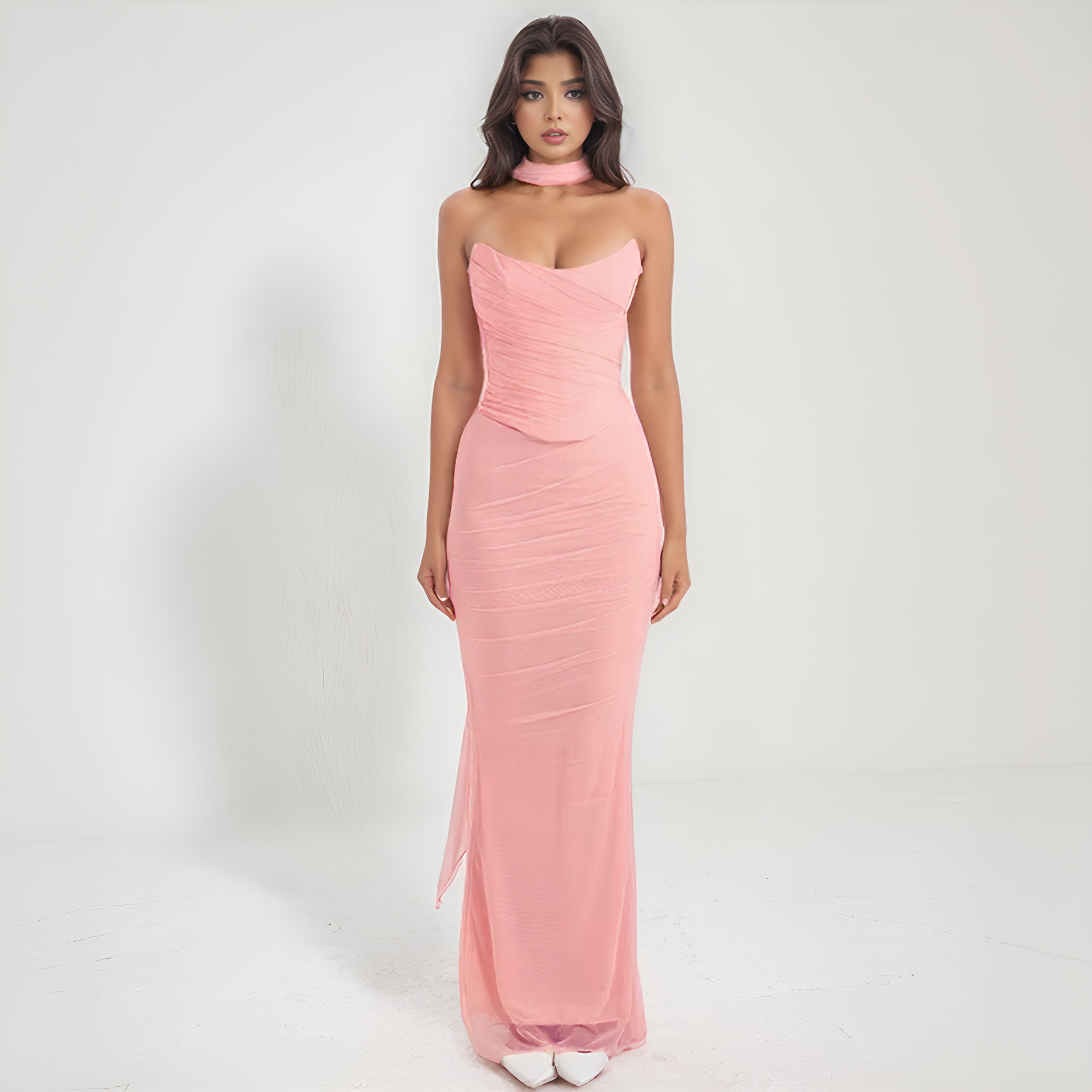 Perry | Long Two-Piece Dress – Strapless Elegance with Coordinated Scarf
