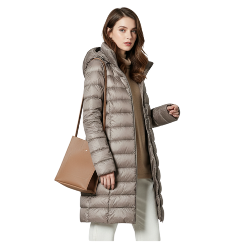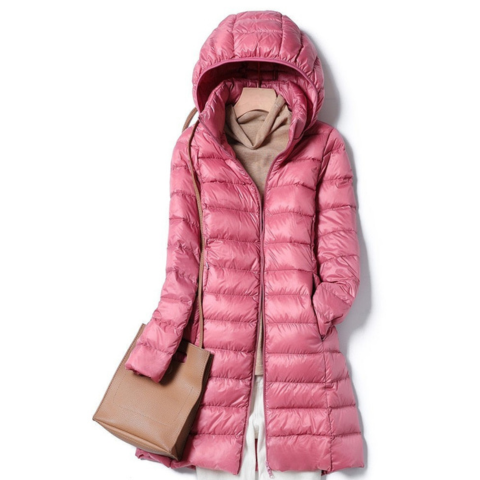 ליא | מעיל פוך ארוך עם כובע לנשים — נוחות רכה וסגנון אורבני