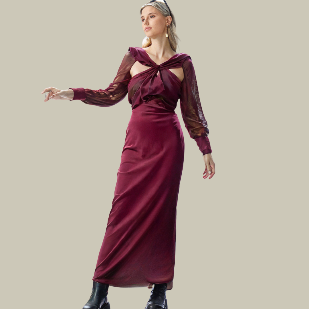 ルナ | エレガントなロングドレス – 長袖と洗練されたカット