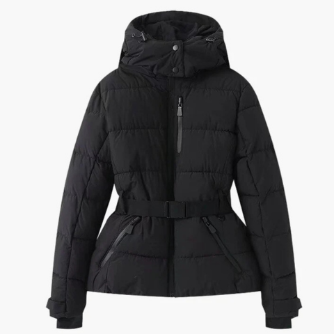 Giulia | Puffet Doudoune med Belte og Hette for Damer — Eleganse & Vintervarme